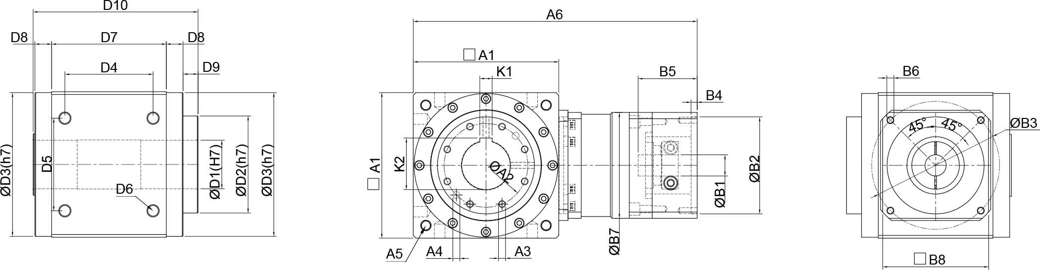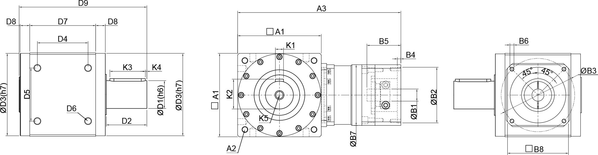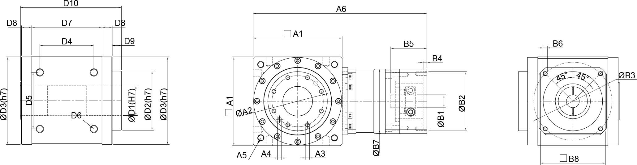 BPTSW系列采用高精度螺旋伞齿轮【镍铬合金钢材质】,高效率、高刚性【双锥形轴承支撑】。