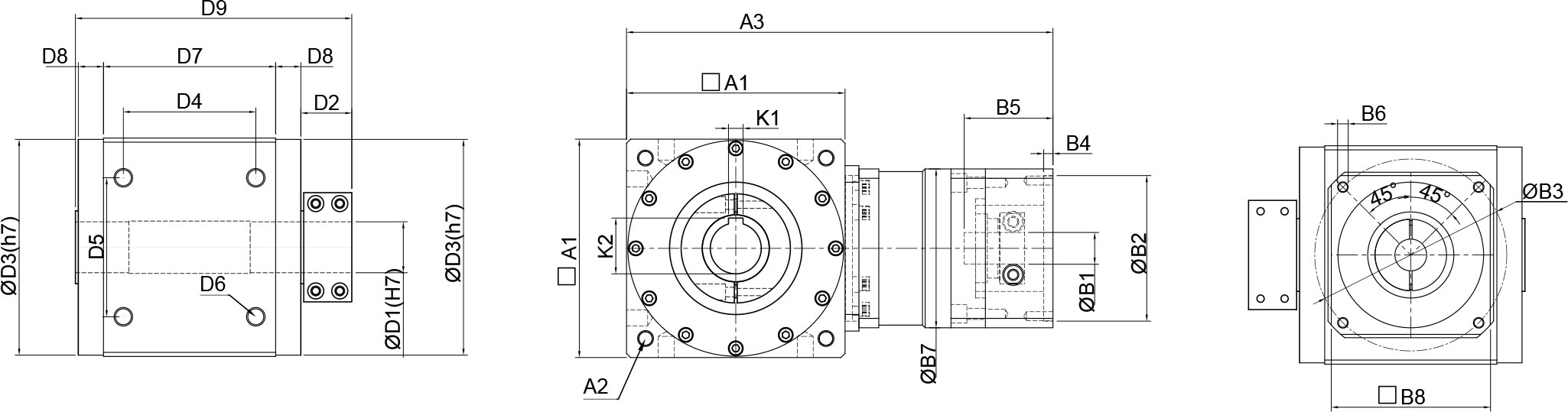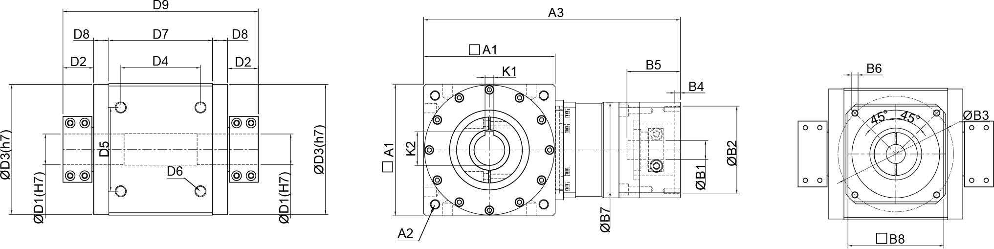 一款高精度、高扭矩和多种输出型式为一体的直角减速器,减速比6-250,精度≤3弧分