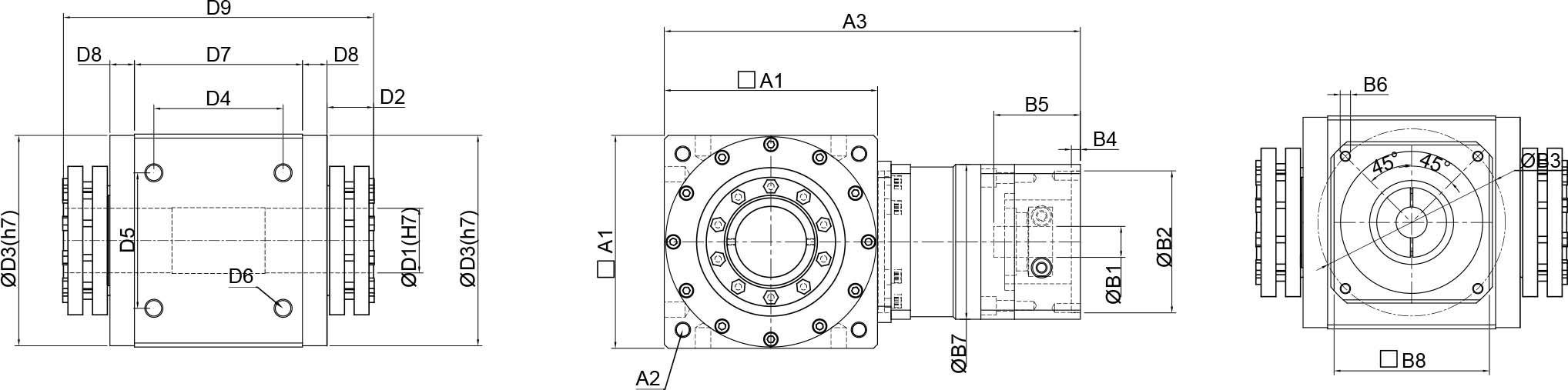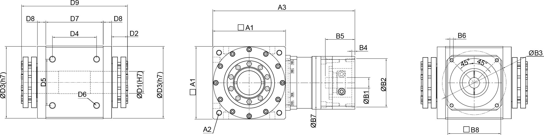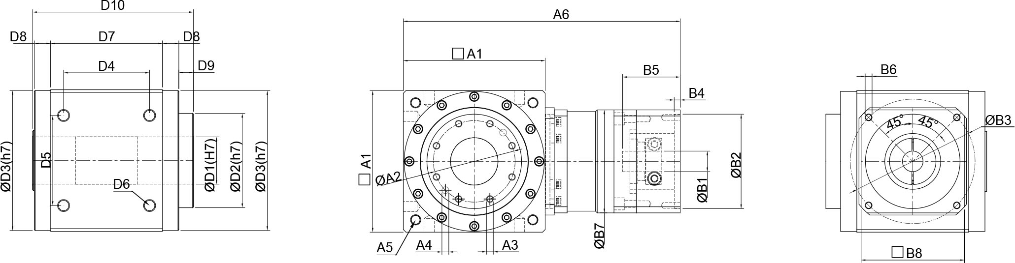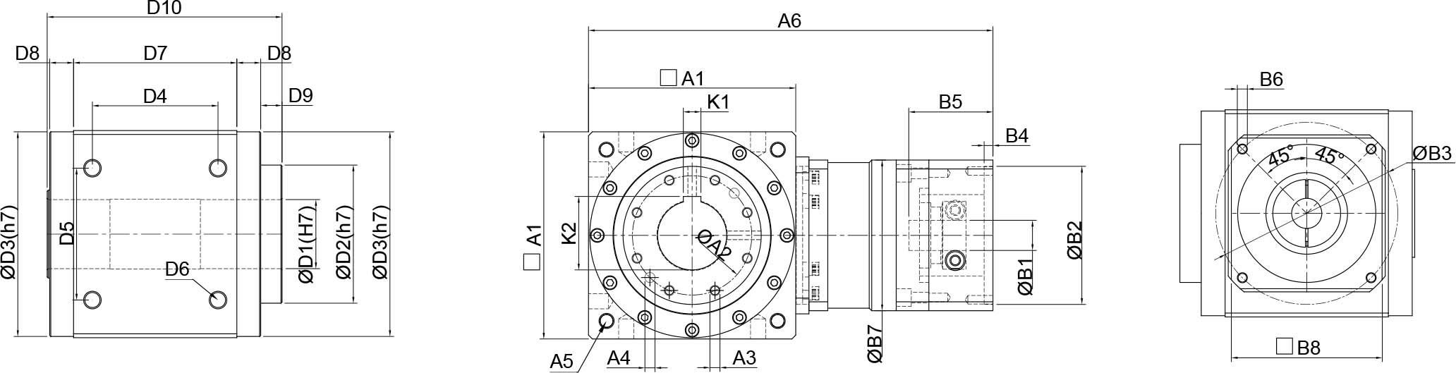 | 技术参数 | 单位 | 减速比 | BPTSM045 | BPTSM070 | BPTSM080 | BPTSM110 | BPTSM135 | BPTSM165 | BPTSM200 | BPTSM250 |